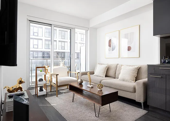 The 56 m² Classy And Luxury 2 Bedroom Apartment 5 Mins To Dundas Square Toronto includes a patio and is located nearly a 25-minute walk from the Bloor/Gladstone Toronto Public Library. This 1-bedroom apartment features Wi-Fi, along with a private parking lot for guests travelling by car.